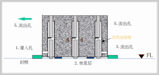 套筒灌漿連接方式是帶肋鋼筋插入內(nèi)腔為凹凸表面的灌漿套筒,在套筒與鋼筋的間隙之間灌注并充滿專用高強水泥基灌漿料,灌漿料凝固后將鋼筋錨固在套筒內(nèi)而實現(xiàn)的一種鋼筋連接方法。